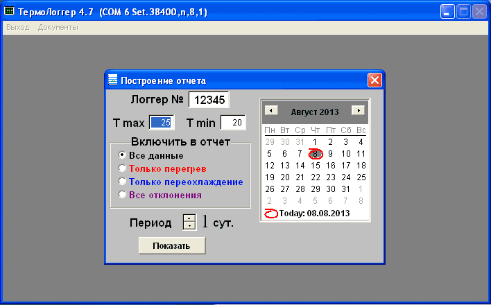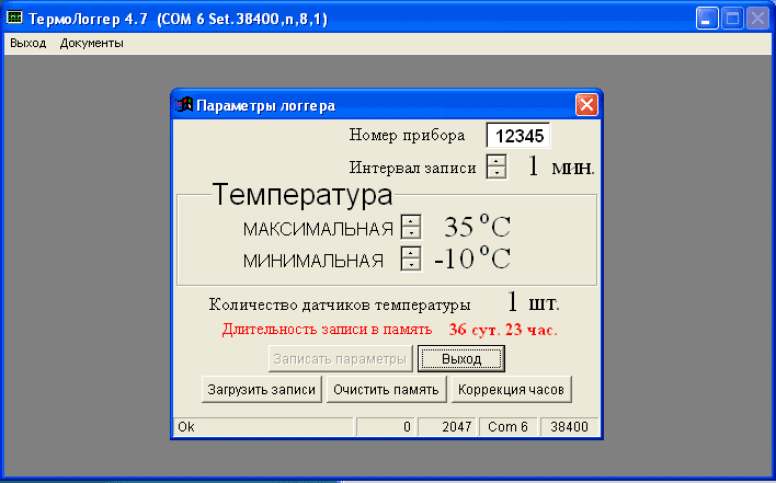 | Інтервал запису показань параметричних сенсорів | 1 хв. |